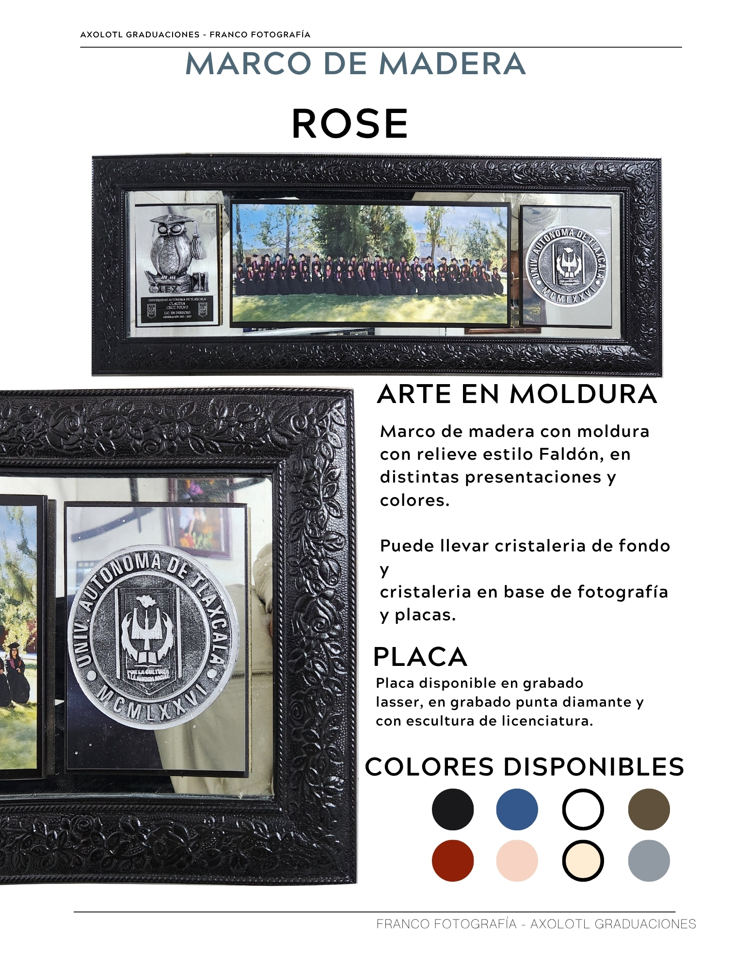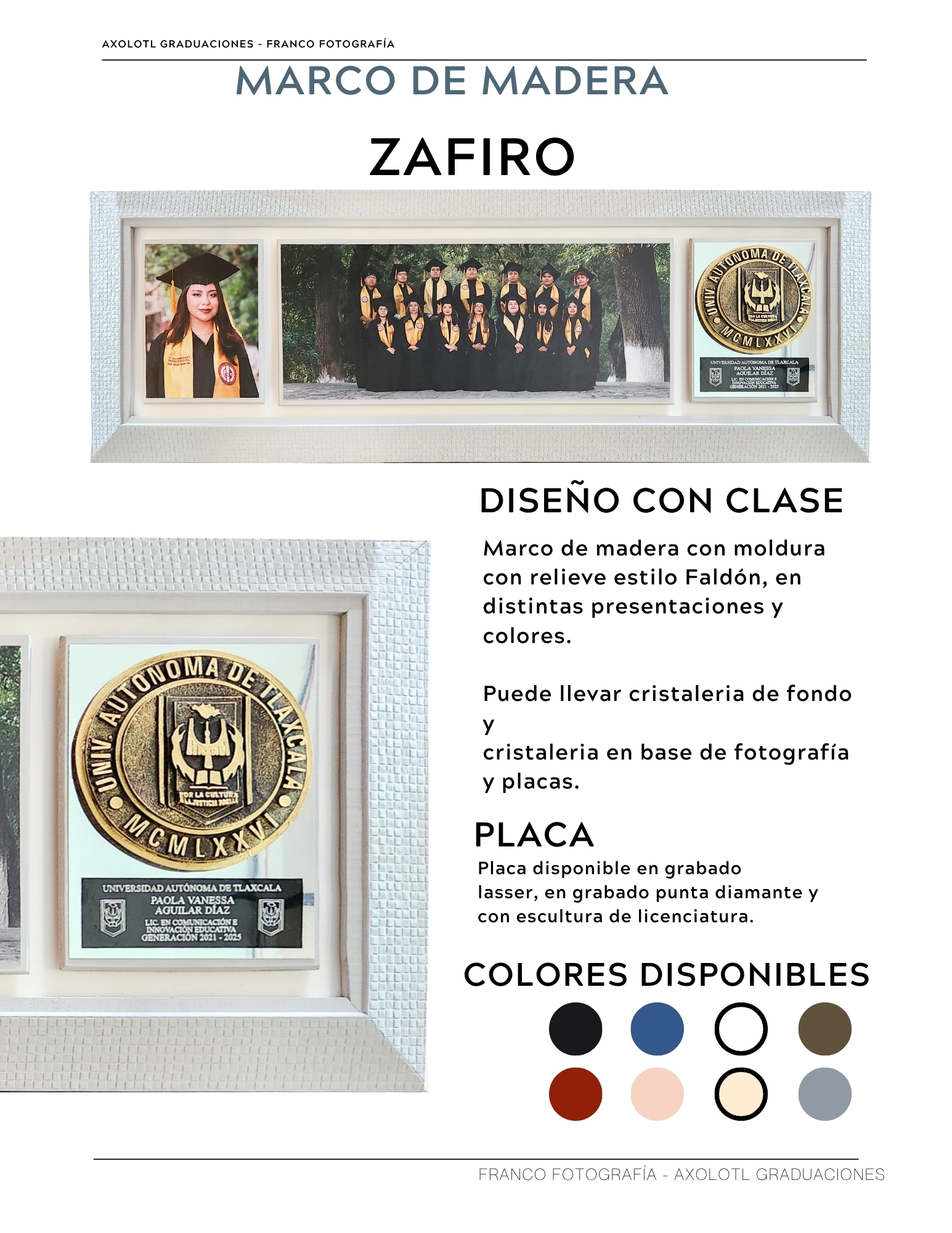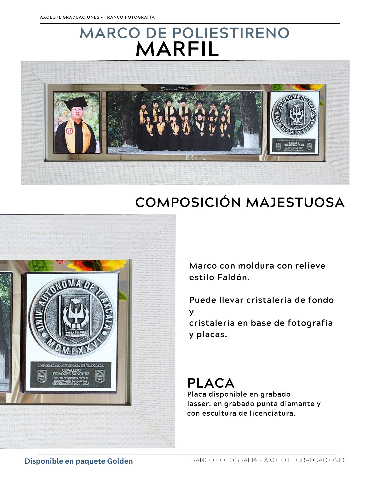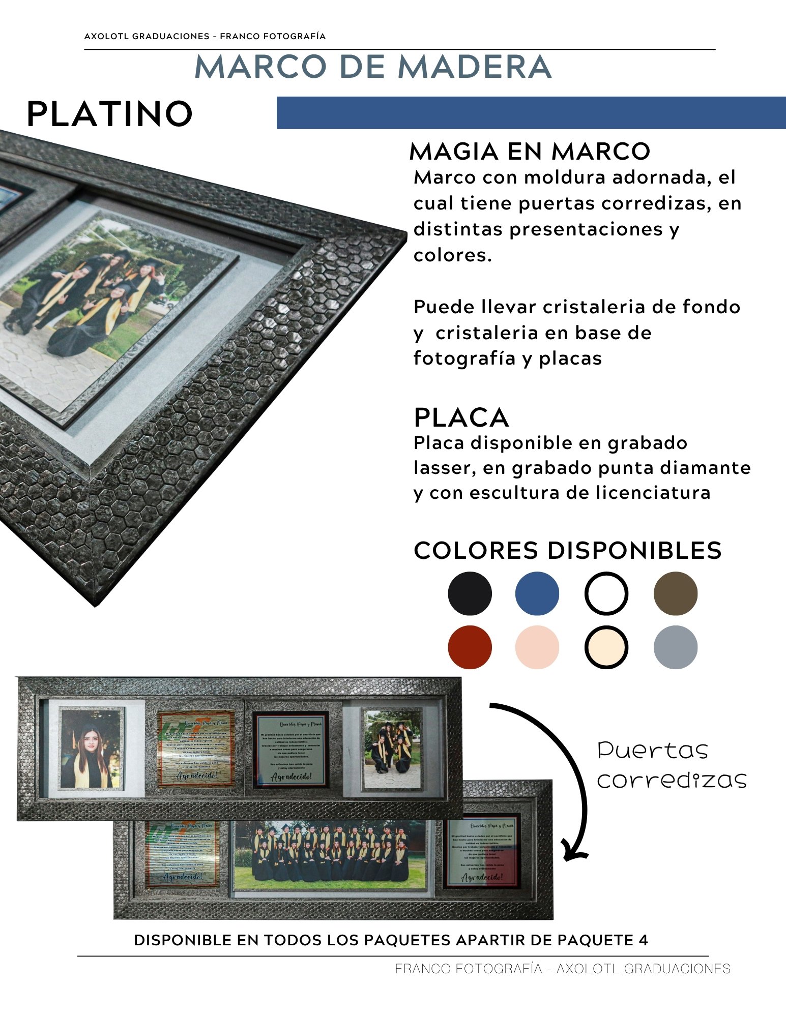 Marco de 3 espacios con cristaleria, opción a puertas abatibles y puertas corredizas. Todas las universidades en escultura.