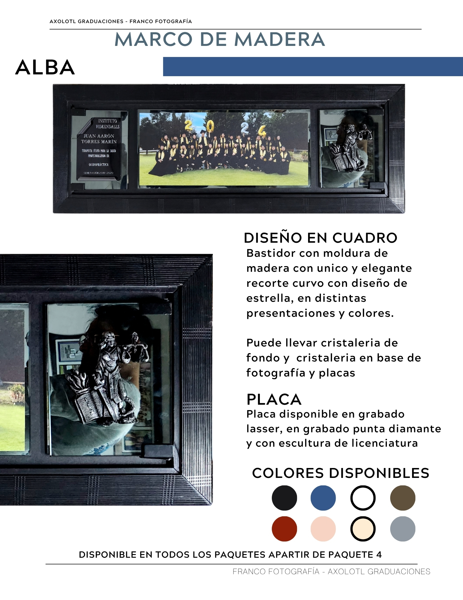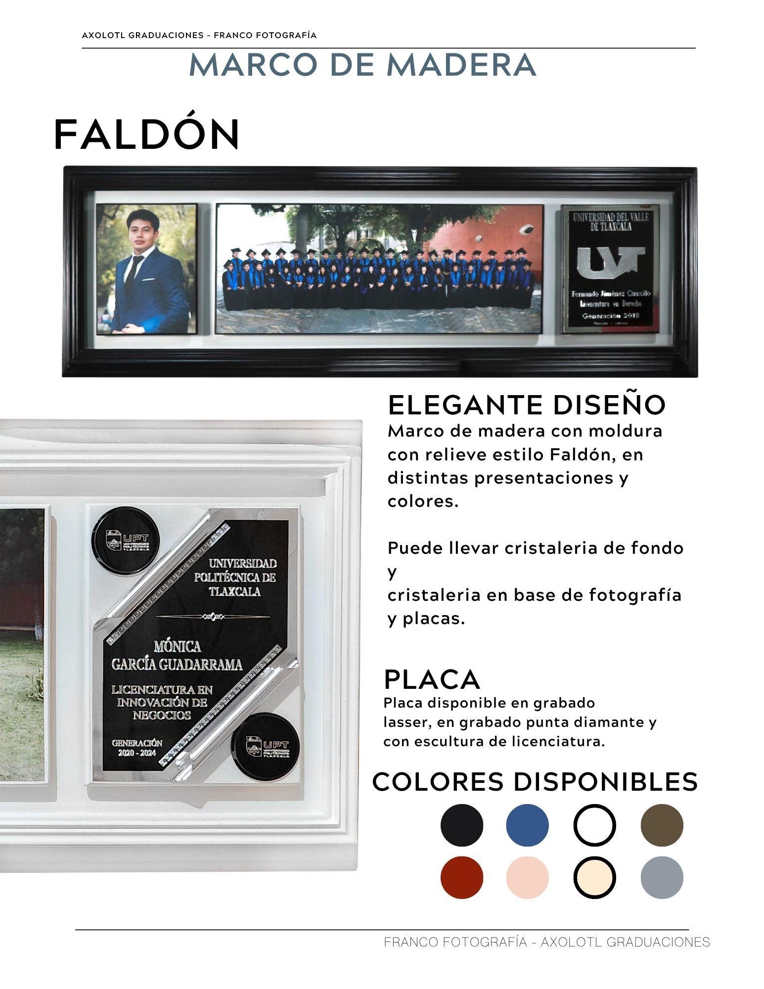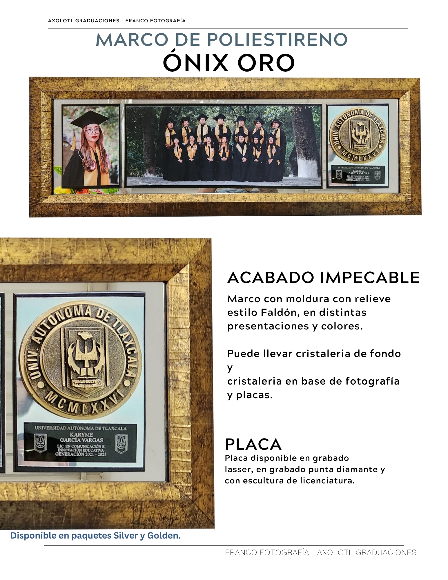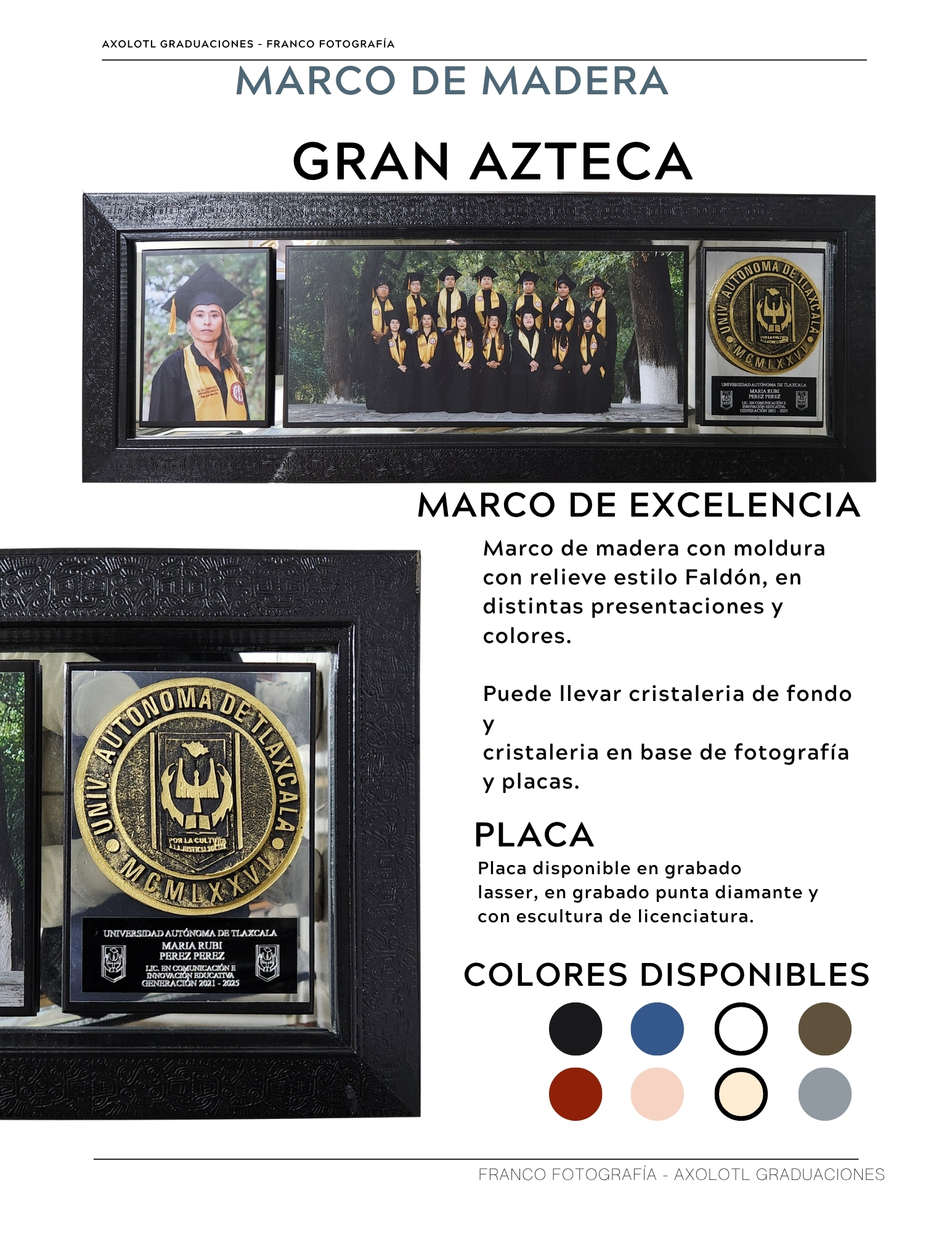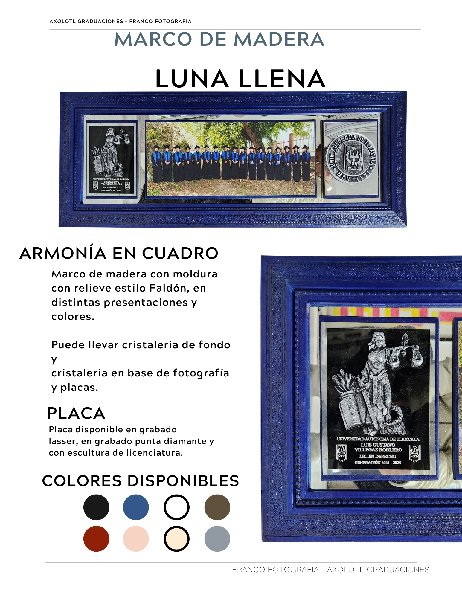 Marco de 3 espacios con cristaleria, opción a puertas abatibles y puertas corredizas. Todas las universidades en escultura.