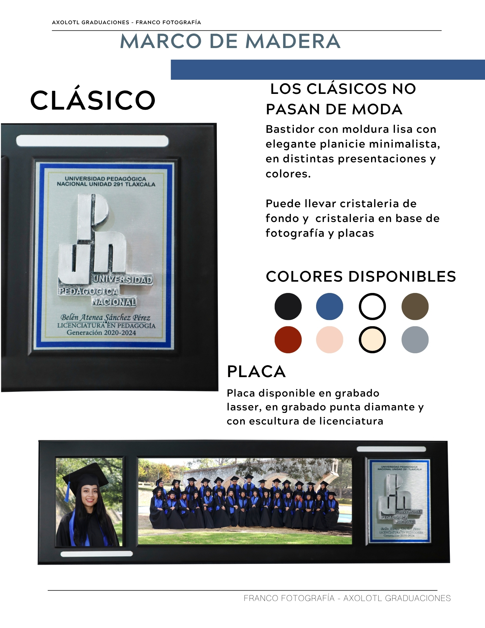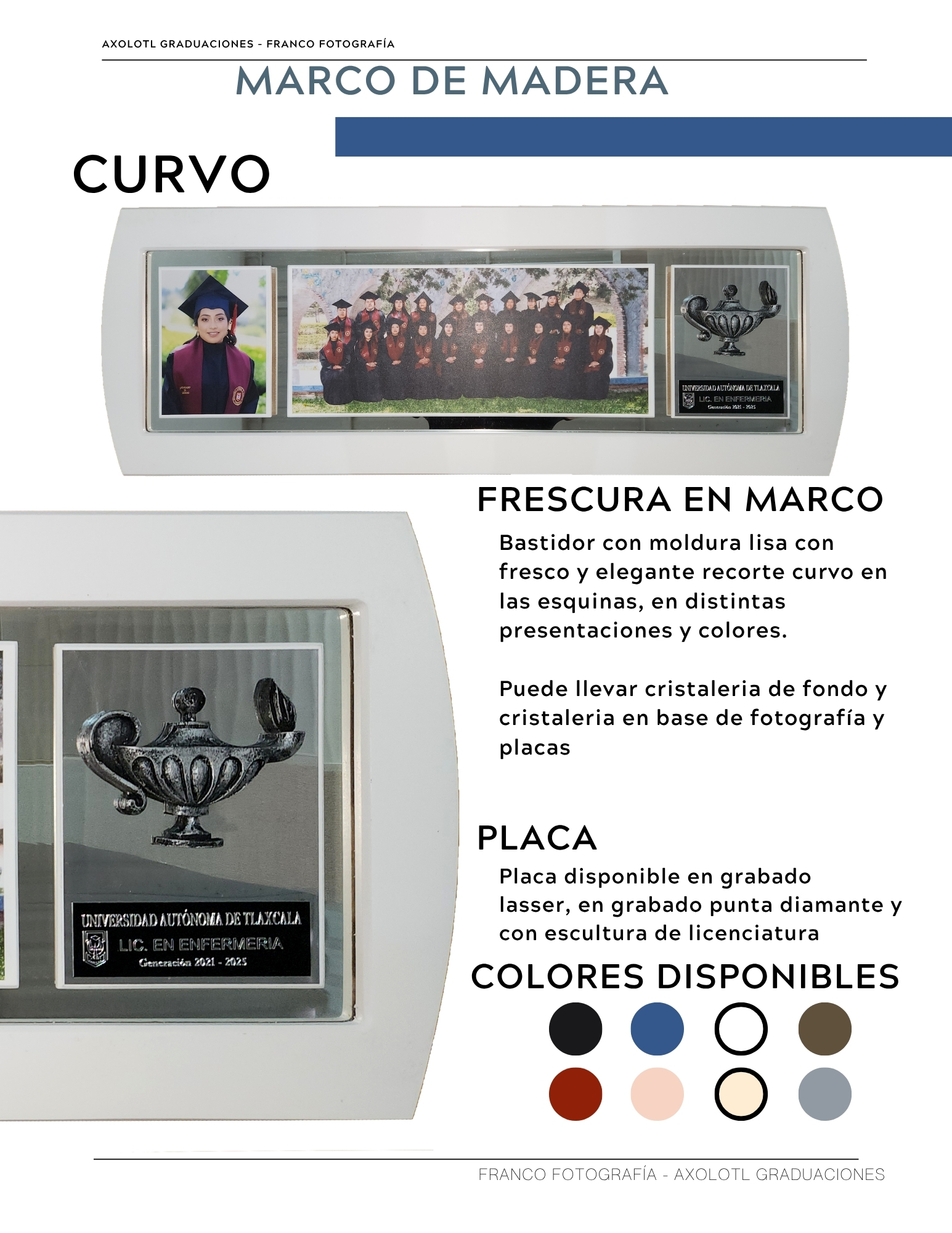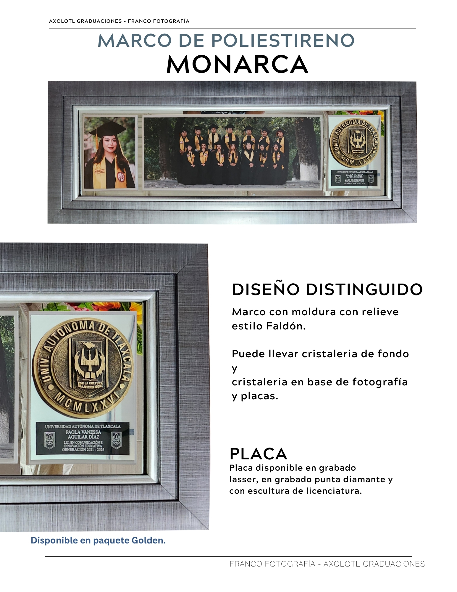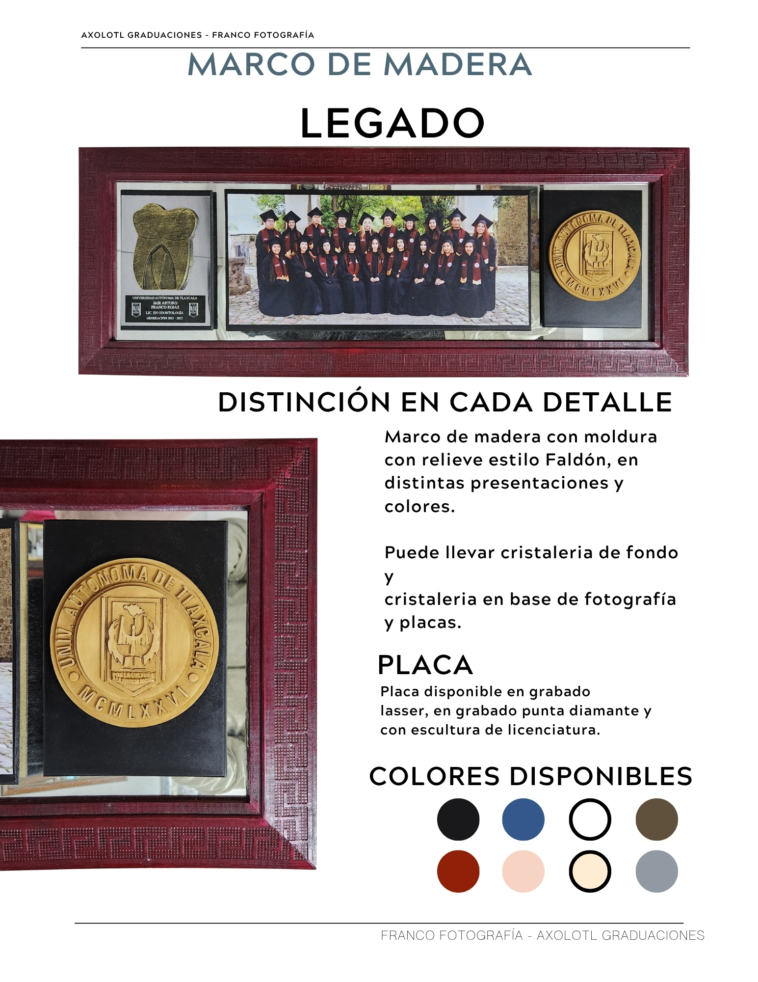 Marco de 3 espacios con cristaleria, opción a puertas abatibles y puertas corredizas. Todas las universidades en escultura.