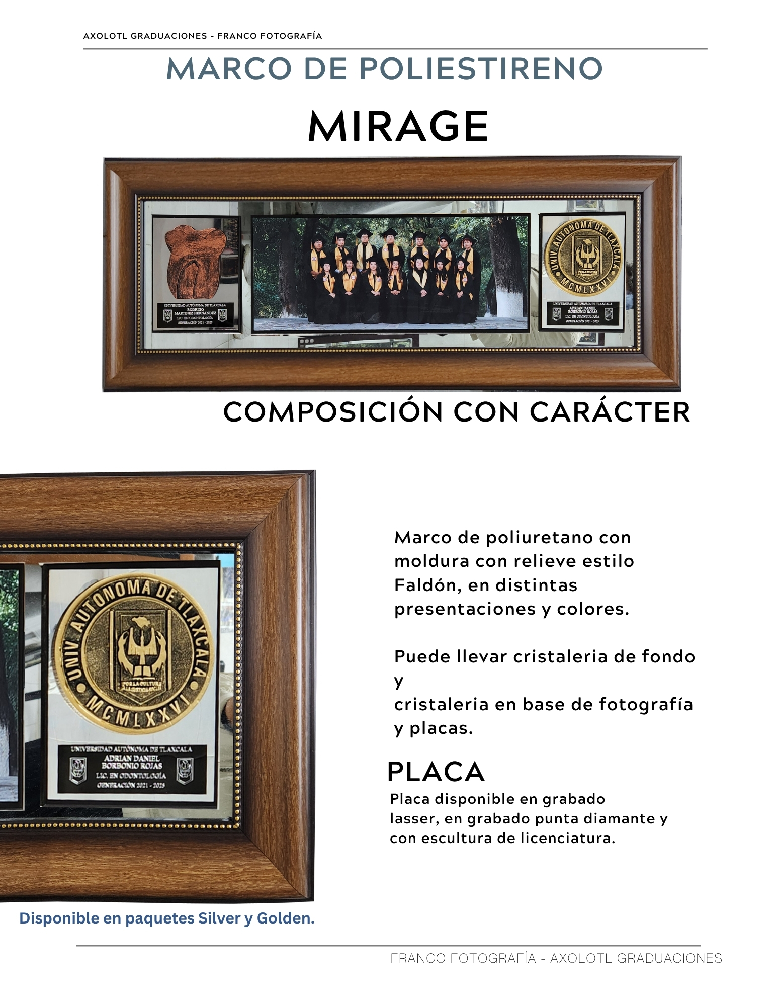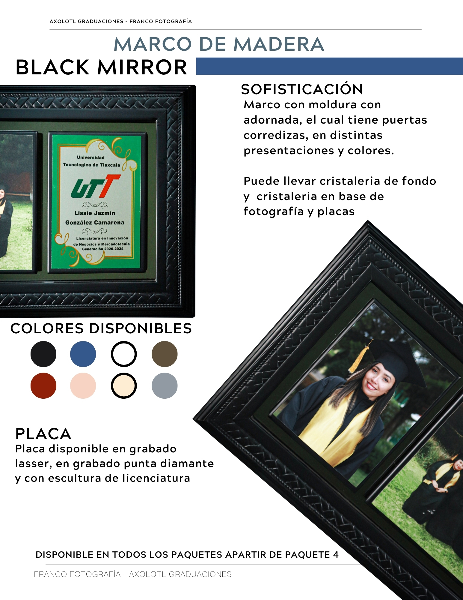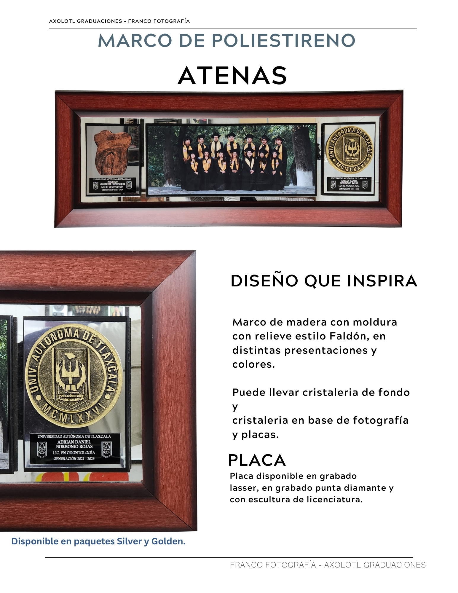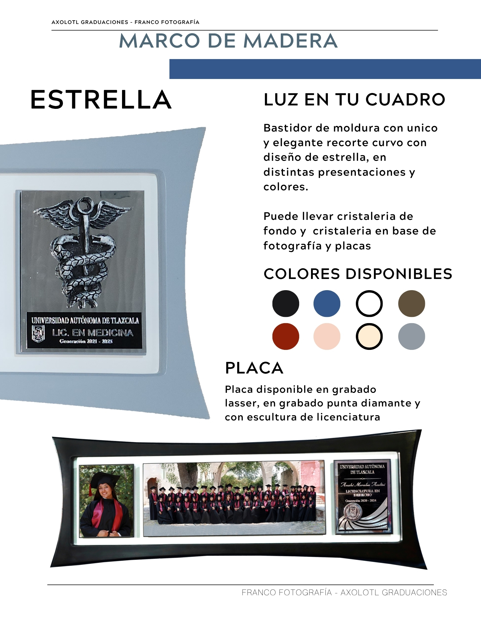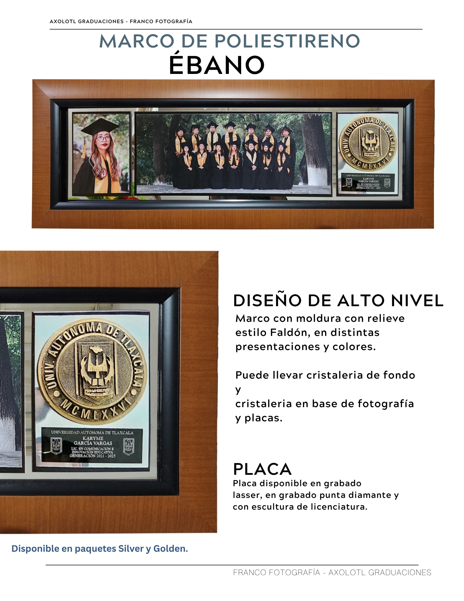 Marco de 3 espacios con cristaleria, opción a puertas abatibles y puertas corredizas. Todas las universidades en escultura.
