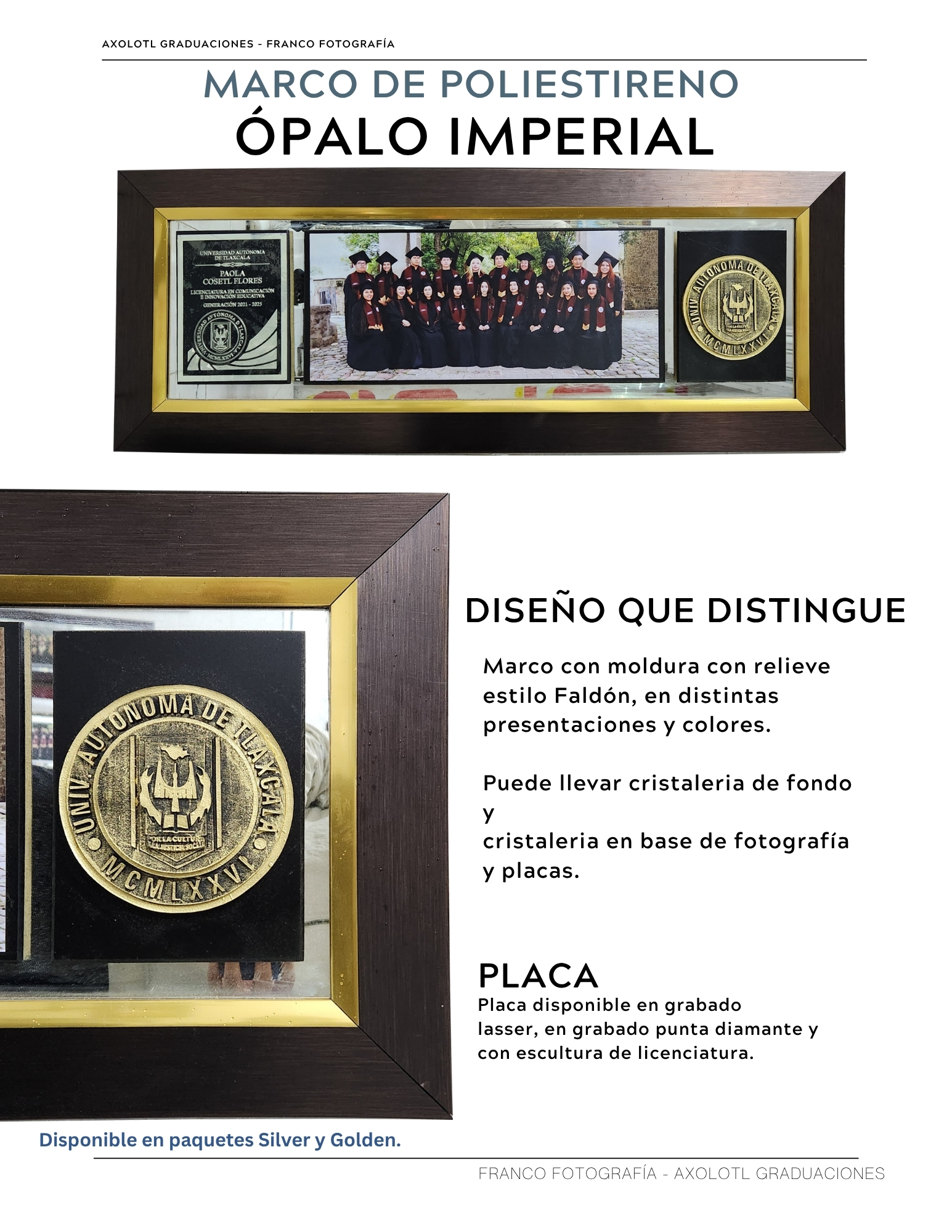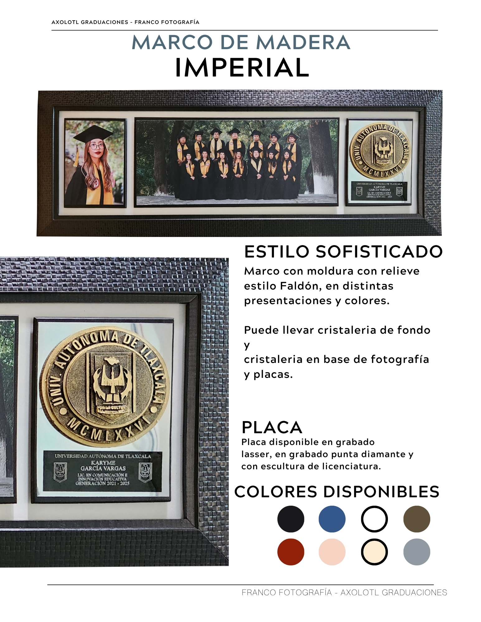 Marco de 3 espacios con cristaleria, opci ón a puertas abatibles y puertas corredizas. Todas las universidades en escultura.